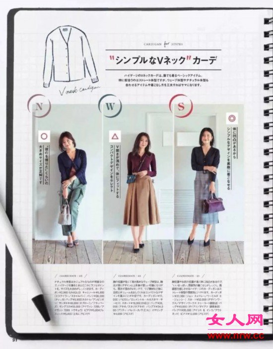 日系通勤女士們上班也很會拿針織衫來做文章,研究出利用下裝單品搭配針織開衫的種種可能:和休閑的褲裝、職業傘裙的常規搭配已經玩得駕輕就熟,沒想到還能將針織開衫直接扎進直筒半裙里,從而提升開衫的整體檔次。