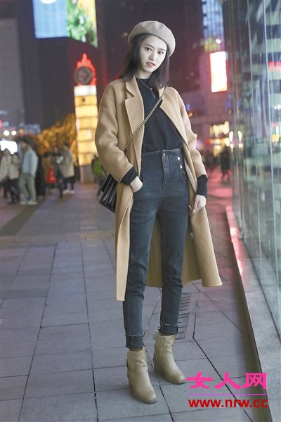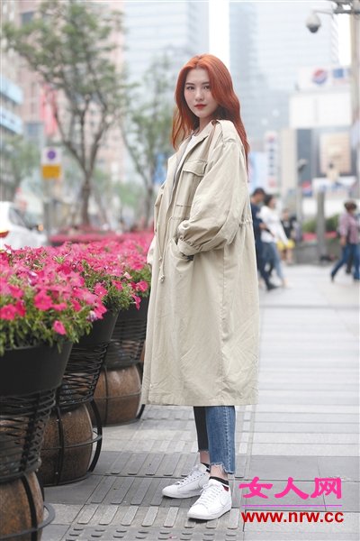 長款的風衣在視覺上似乎對身材嬌小的妹子不太友好,利用一些技巧搭配,反而有“增高”的奇效哦。比如上下裝選擇同一種顏色,讓視覺感更加流暢,從而起到拉伸的效果(圖5)。