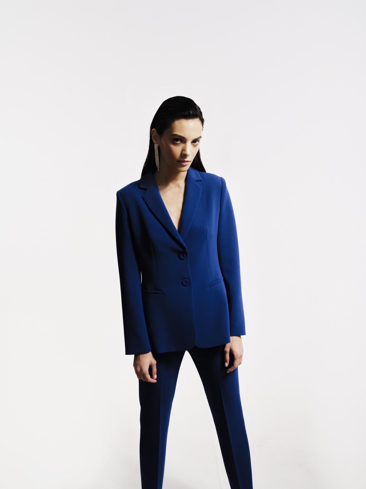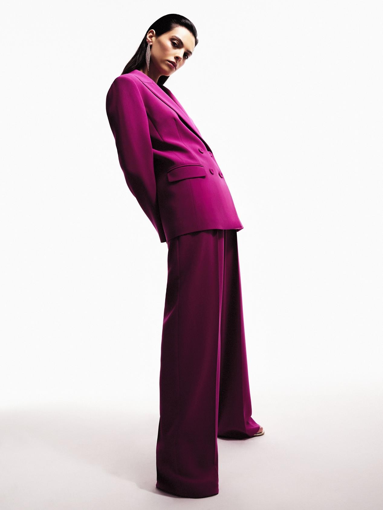 除此之外,此系列的西裝設(shè)計更加注重女性特質(zhì),精選鮮艷色彩或柔和色調(diào),以精裁工藝演繹經(jīng)典西裝風(fēng)格。紫紅色、矢車菊藍及祖母綠色,大膽吸睛,盡顯優(yōu)雅灑脫的氣質(zhì)優(yōu)雅,展露女性迷人魅力。